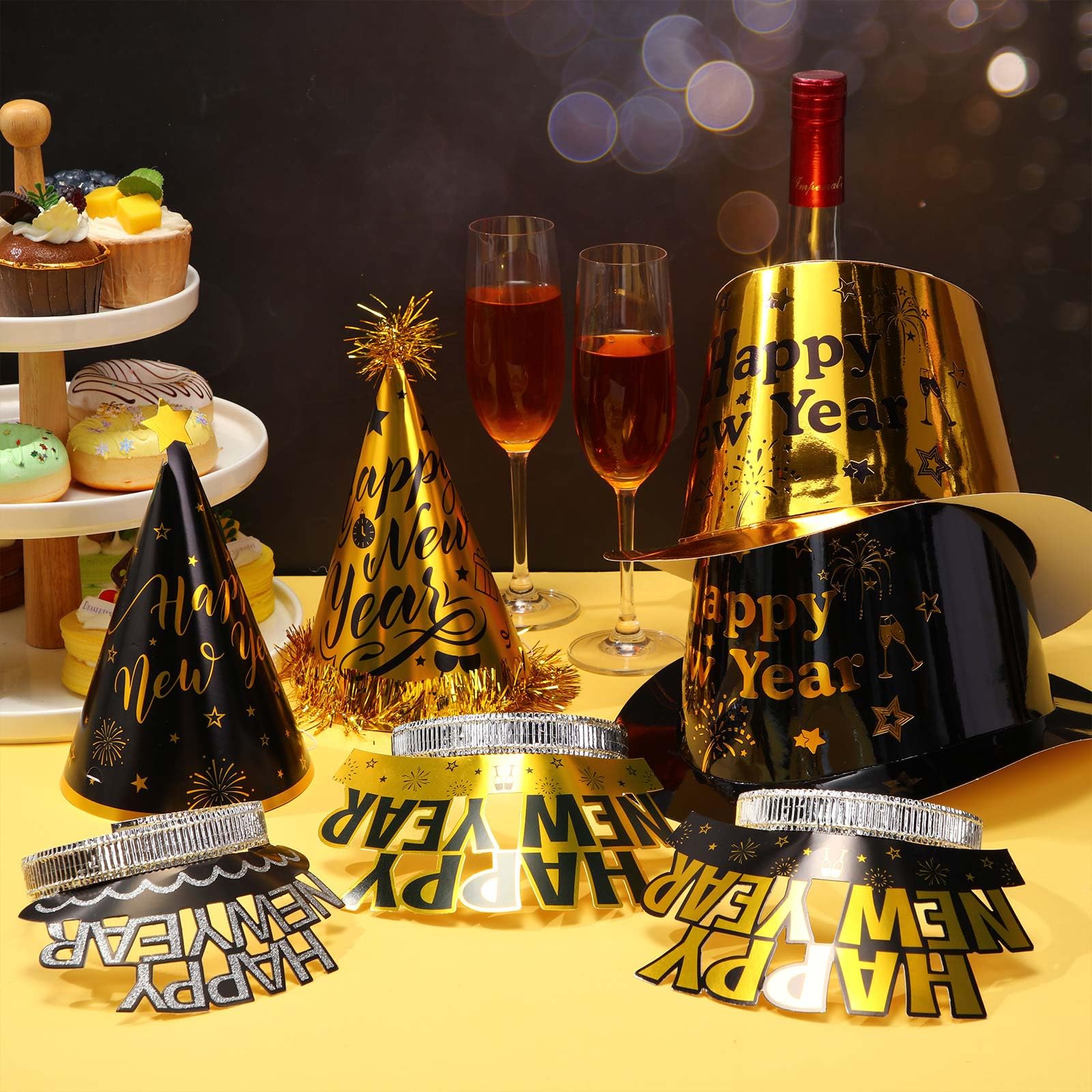 - Happy New Year Decor: you will get 144 pieces New Year party hats, which include 48 party Happy New Year hats, 48 New Year's Eve headbands, and 48 party conical hats; The New Year party decoration set looks very nice and attractive, enough to provide your New Year party decoration needs and can bring you an unforgettable party time