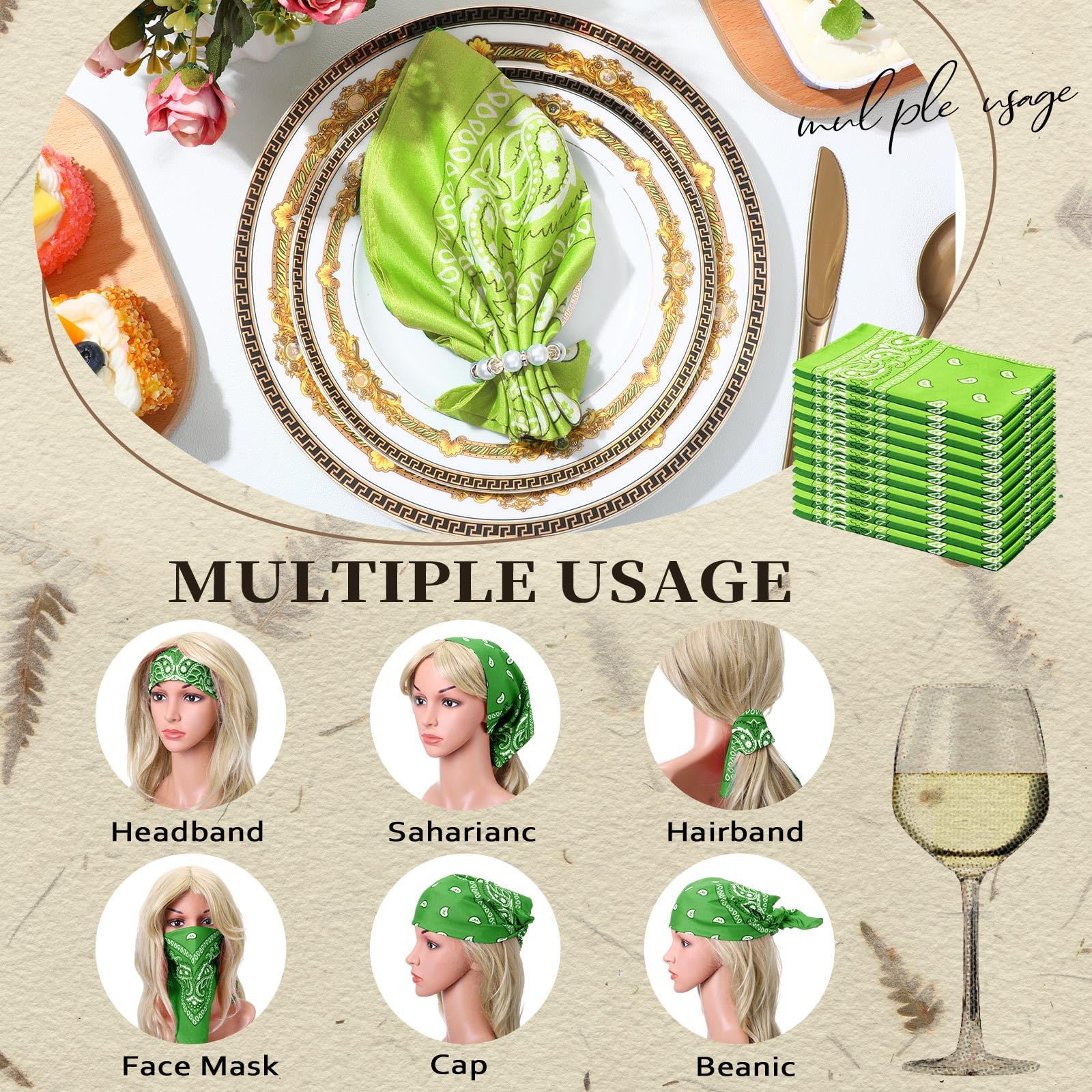 - Multi Purpose Wearing: the bandana for head can be worn as bandanas, head wraps, neckties, face covers, headbands, and other decorations on the wrist, neck, head, or you can also tie it on your bags, or other places as you will