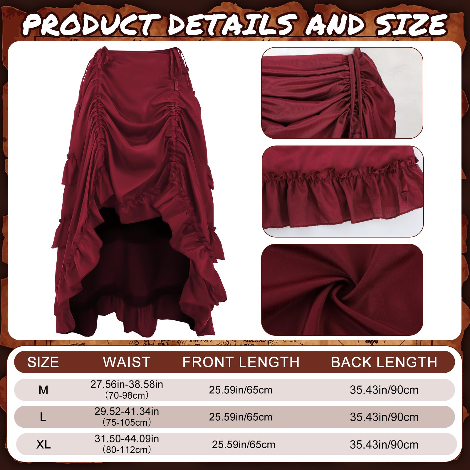 - Package Information: you will get 1 women renaissance blouse, 1 corset waist belt, 1 high low skirt; Sufficient quantity will meet your using needs, and you can share them with your family