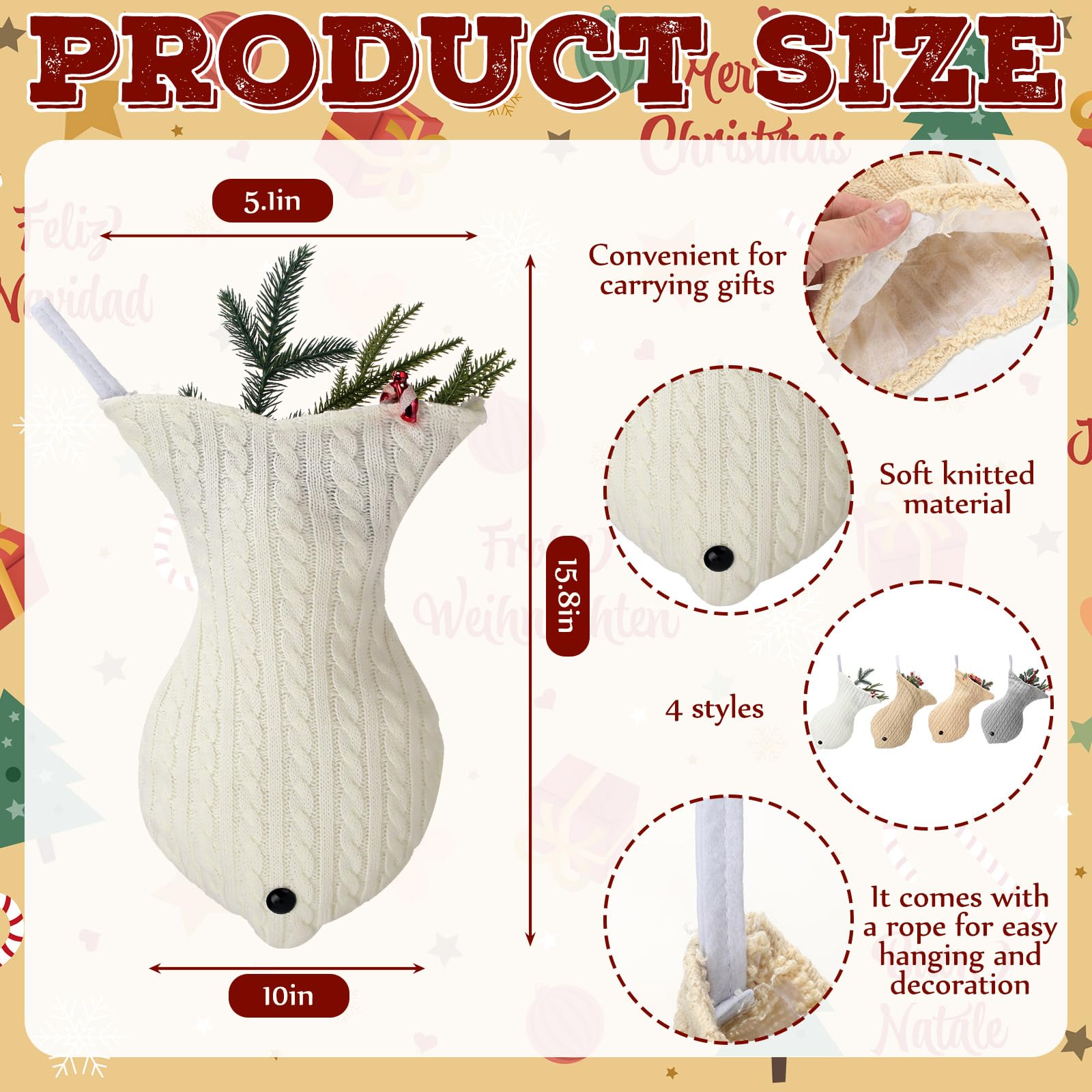 Suhine 4 Pack Cat Winter Christmas Stockings 16 Inch Large Knit Farmhouse Fish Shape Christmas Stocking for Pet Cat Dog Xmas Tree Fireplace Hanging Ornaments with Tag for Holiday Family Friends Gifts
