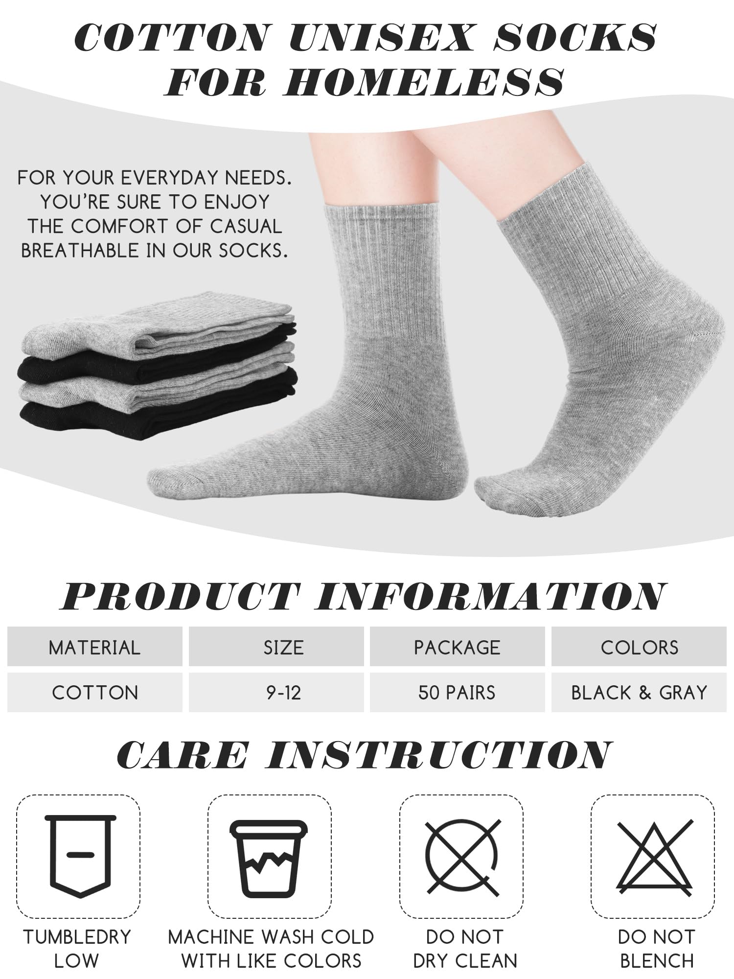 Suhine 50 Pairs Homeless Socks Men Crew Socks Bulk for Unisex Adult Sport Casual, Soft Cotton Warm Thickened Thermal