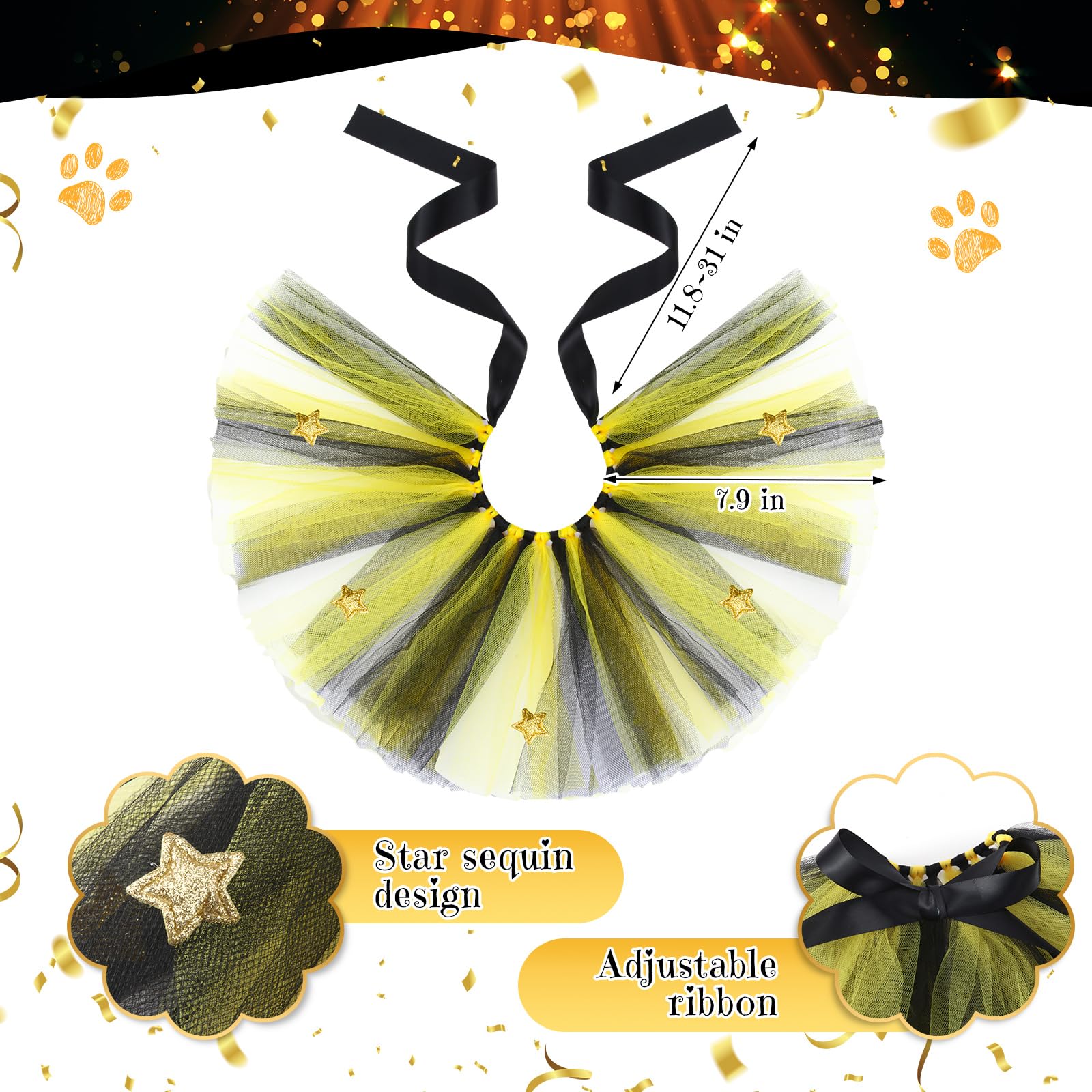 - New Year Costume Set: you will get 6 pieces of Happy New Year pet suits, including 2 tutu skirts in black and gold colors, 2 bandanas, and matching with 2 shiny hair bands; Such a nice set for you to dress up your pets, and you can also share them with your friends who own pets, to celebrate this important festival together