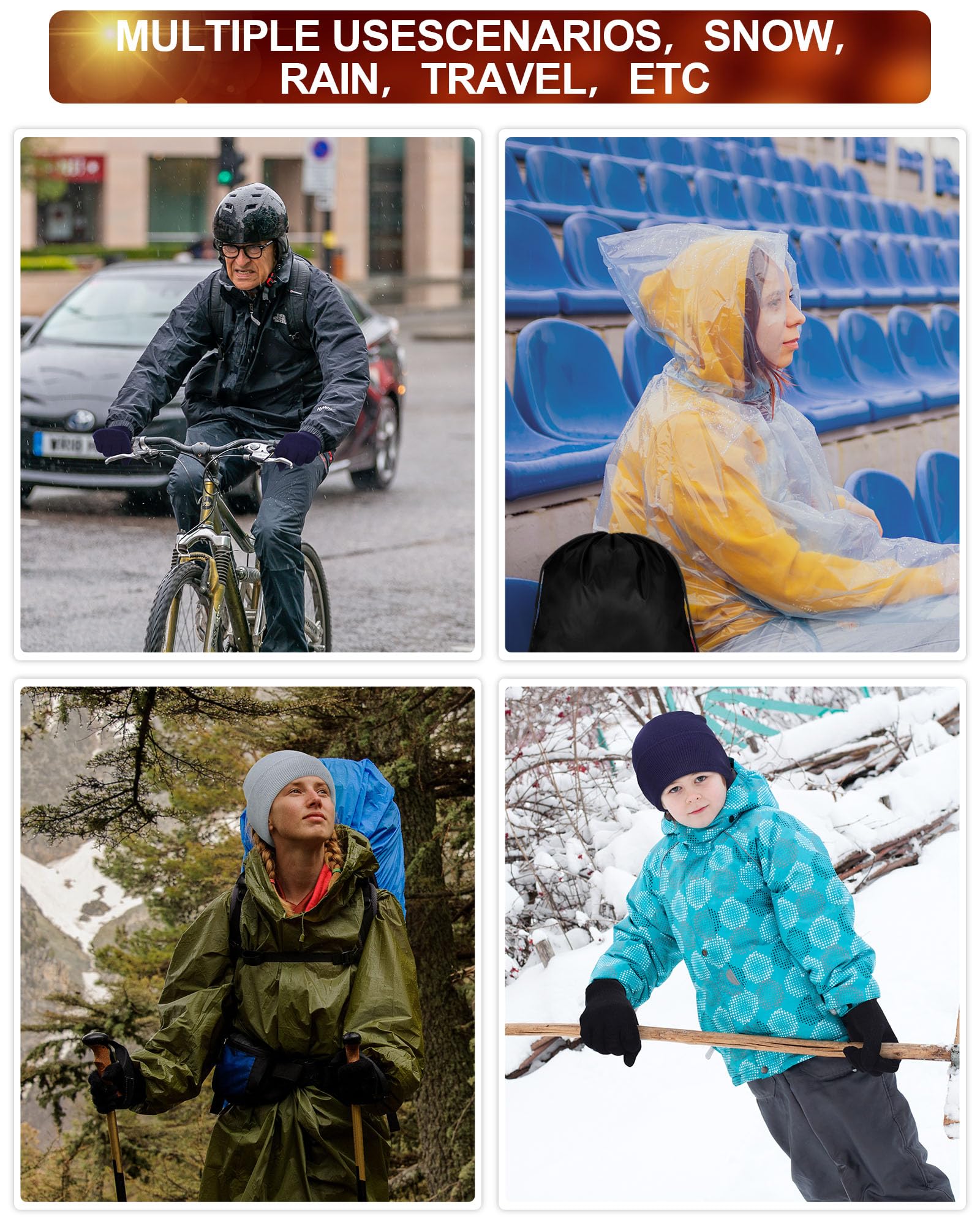 Suhine 60 Pcs Homeless Care Package Supplies Winter Beanie Hat Gloves Warm Socks Rain Ponchos with Hood Drawstring Bags for Donation Charity Men Women