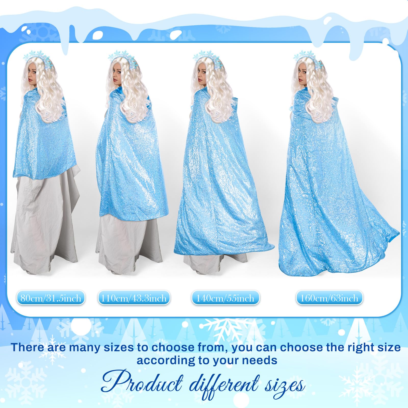- Enchanting Design: this women princess cloak features elegant sequin details and a graceful drape, matching our sparkling snowflake headband and soft blonde wig, which will enhance your presence at costume parties, stage performances, or holiday events